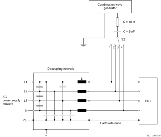 由于大電流小阻抗的EUT可能與浪涌發生器連接,則大部分的浪涌能量將被發生器的輸出阻抗吸收。
