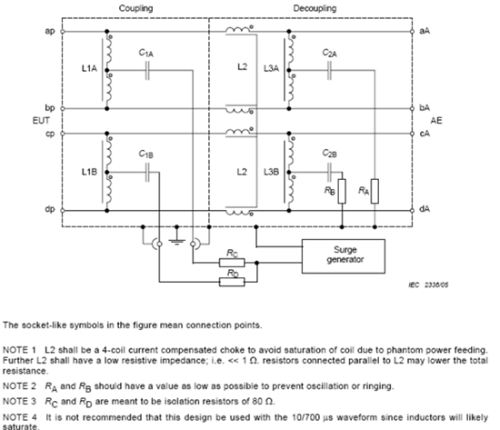 Annex H 對額定電流大于200A的供電線路施加浪涌的耦合去耦方法