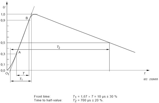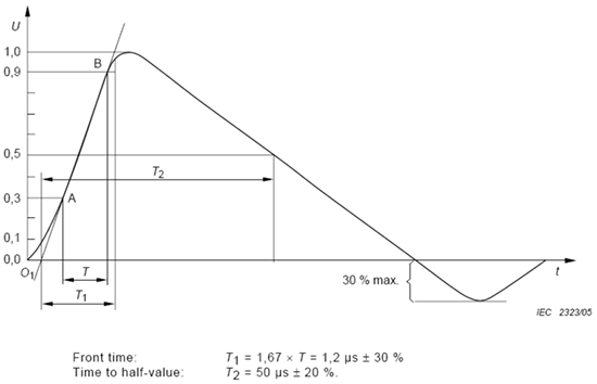 電壓 波前時間Tf Tf=1.67×Tr ±30% |