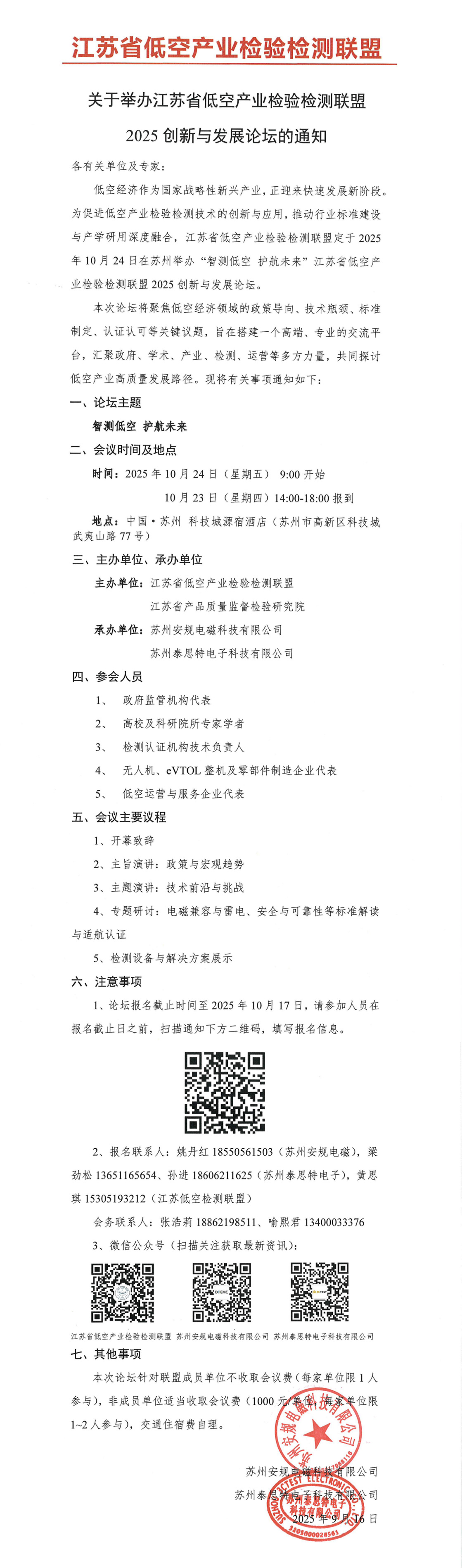 為積極響應(yīng)國(guó)家低空經(jīng)濟(jì)戰(zhàn)略部署,推動(dòng)低空產(chǎn)業(yè)檢驗(yàn)檢測(cè)技術(shù)跨越式發(fā)展,江蘇省低空產(chǎn)業(yè)檢驗(yàn)檢測(cè)聯(lián)盟將于2025年10月24日在蘇州科技城源宿酒店隆重舉辦“江蘇省低空產(chǎn)業(yè)檢驗(yàn)檢測(cè)聯(lián)盟2025創(chuàng)新與發(fā)展論壇”。本次論壇由蘇州泰思特電子科技有限公司承辦,旨在匯聚行業(yè)智慧,共商低空產(chǎn)業(yè)高質(zhì)量發(fā)展創(chuàng)新路徑與發(fā)展方向。