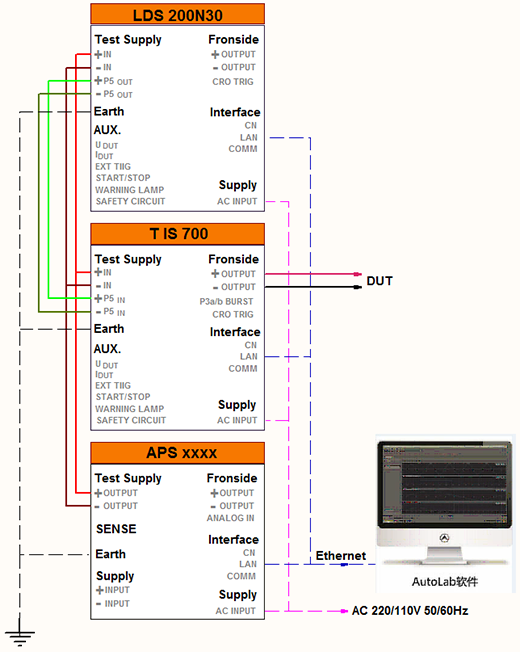 可連接至TIS 700瞬變脈沖干擾模擬器 |